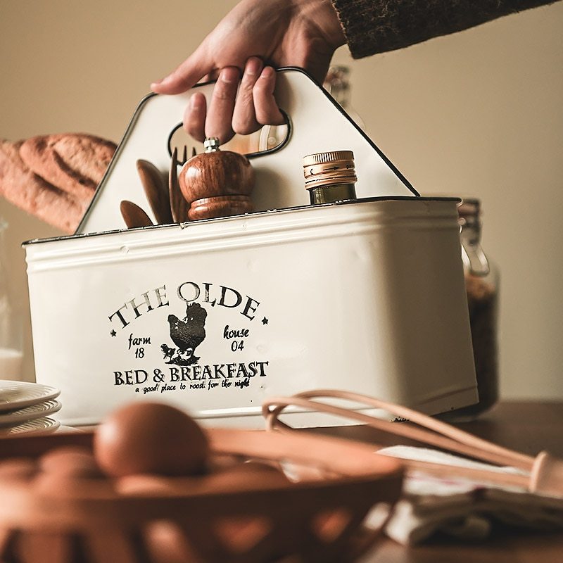 Distressed iron table top organizer storage box