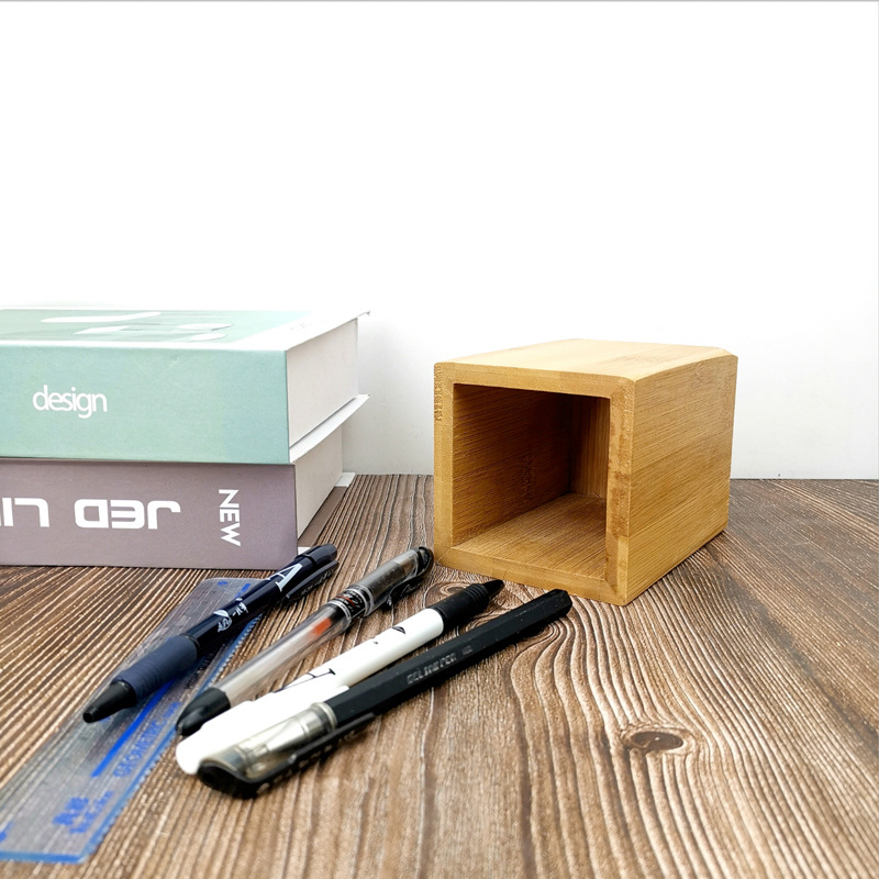 Bamboo pen holder stationery storage jar